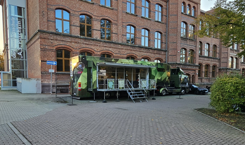 Im Oktober 2024 besuchte uns der Karrieretruck der Bundeswehr. In diesem mobilen Informationsstand konnten sich die Schülerinnen und Schüler der siebenten, achten, neunten und zehnten Klassen über die vielfältigen militärischen und zivilen Ausbildungsmöglichkeiten beim Arbeitgeber Bundeswehr informieren.