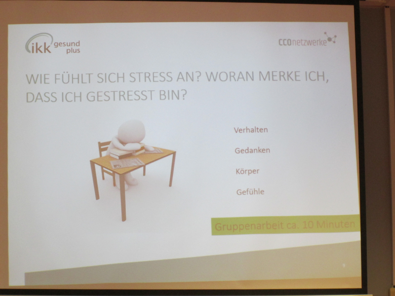 Das Programm fand sehr guten Anklang bei den Jugendlichen. Sie konnten sich einbringen und aus ihren Erfahrungen sprechen, da sie alle sowohl Stress als auch Konflikte kennen, gerade in den letzten Jahren. Die Mitarbeit war sehr gut, da es keine Vortragsreihe war, sondern die Veranstaltung von den Beiträgen und Erfahrungen der Jugendlichen lebte. Durch die Gruppenarbeiten, Tests und Spiele wurde immer wieder das Vermitteln von Theorie aufgebrochen und in das Alltägliche transferiert, also in die Lebenswelt der Jugendlichen. Sie hatten Gelegenheit sich selbst zu hinterfragen und sich neue Strategien zurecht zu legen, um Stress zu vermeiden oder bei Zeiten abzubauen.