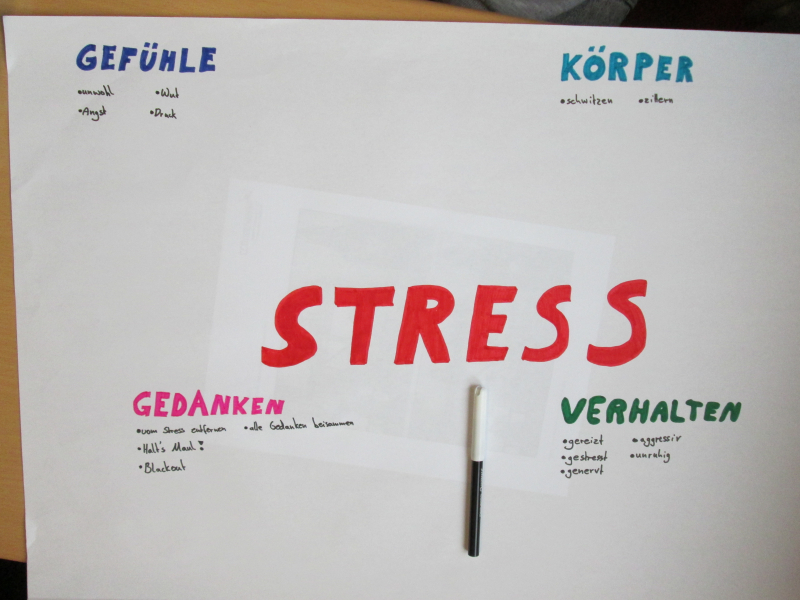 Mögliche Themenmodule sind Stress, Konfliktlösung, Resilienz, Selbstwirksamkeit, Selbstmanagement und Kommunikation. Die KlassenlehrerInnen der drei neunten Klassen hatten Stress und Konfliktlösung gewählt.