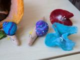 Frau Klingberg hat gemeinsam mit unseren Schülerinnen und Schülern mit Hilfe verschiedener Methoden (z. B. Trockenfilzen) Filz hergestellt und daraus herbstliche und winterliche Motive gebastelt. Dabei kam nicht nur der Spaß nicht zu kurz, die Kinder konnten ihr handwerkliches Geschick unter Beweis stellen und ihre Feinmotorik schulen.